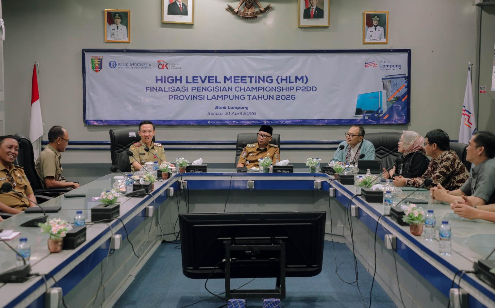 Komitmen tersebut disampaikan Gubernur Lampung, Rahmat Mirzani Djausal, dalam High Level Meeting Finalisasi Pengisian Championship TP2DD 2026 yang digelar di Ruang Rapat Bank Lampung, Selasa (21/04/2026).