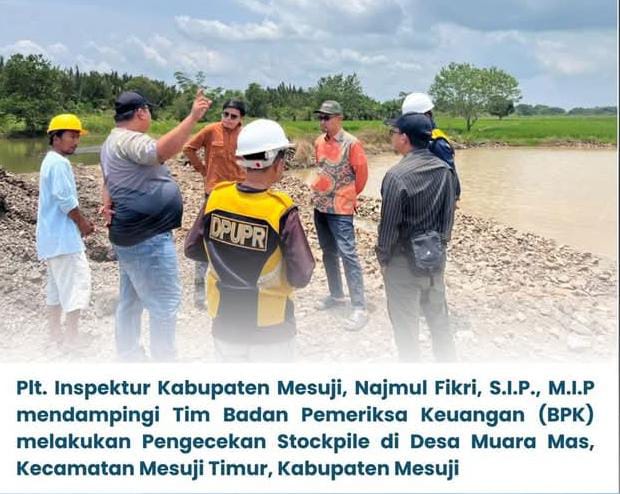 PIJAR MEDIA, MESUJI – Dalam rangka penegakan transparansi dan akuntabilitas tata kelola pembangunan daerah, Tim Badan Pemeriksa Keuangan (BPK) melakukan peninjauan lapangan langsung (opname) terhadap kondisi stockpile (tumpukan material) di Desa Muara Mas, Kecamatan Mesuji Timur, Kamis (05/03/2026).