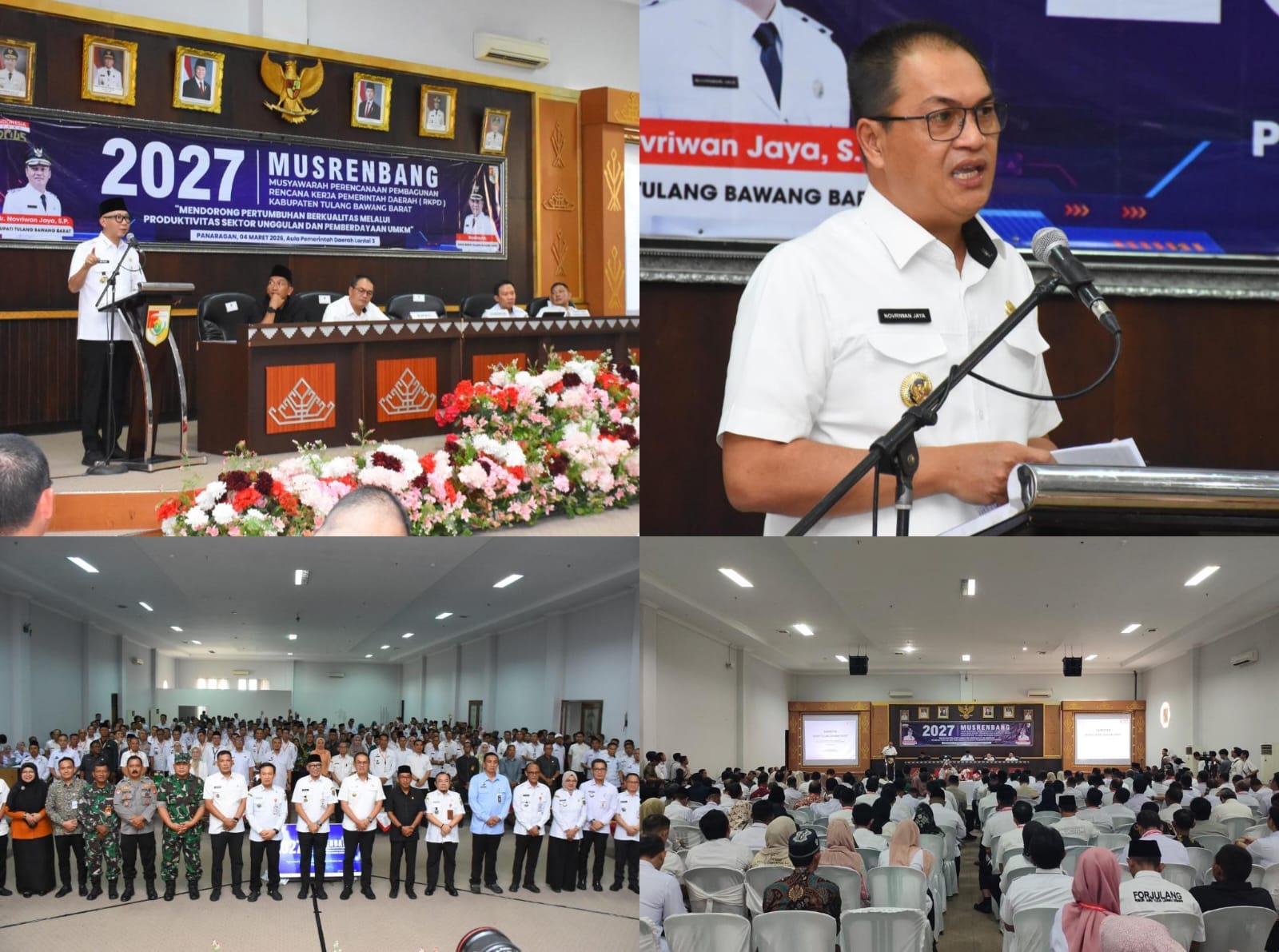Mengusung tema “Mendorong Pertumbuhan Berkualitas Melalui Produktivitas Sektor Unggulan dan Pemberdayaan UMKM”, Musrenbang yang berlangsung di Aula Lantai III Kantor Pemda Tubaba, Rabu (04/03/2026), dipimpin langsung Bupati Novriwan Jaya didampingi Wakil Bupati Nadirsyah. Hadir pula Gubernur Rahmat Mirzani Djausal, Wakil Ketua DPRD Ponco Nugroho, Sekda Provinsi Lampung Marindo, Sekda Tubaba Iwan Mursalin, serta jajaran kepala OPD, Camat, Kepala Tiyuh, Lurah, hingga unsur masyarakat.