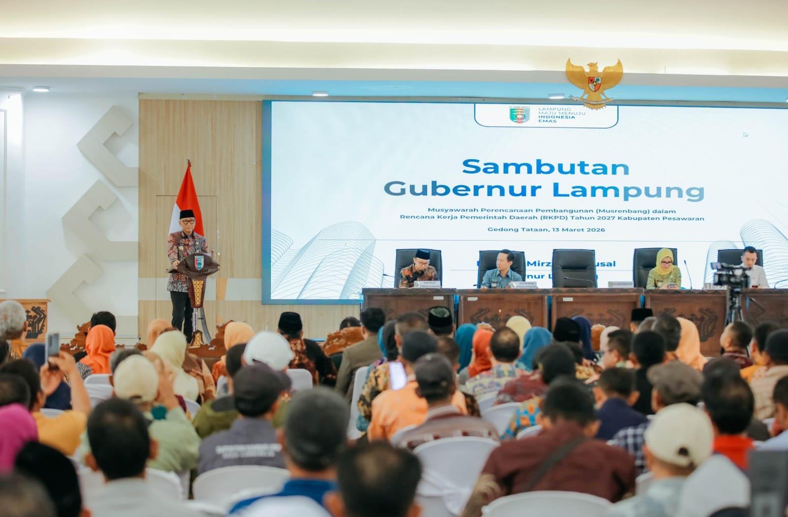 Hal tersebut disampaikan Mirza saat membuka Musyawarah Perencanaan Pembangunan (Musrenbang) 2026 dalam rangka penyusunan Rencana Kerja Pemerintah Daerah (RKPD) Kabupaten Pesawaran Tahun 2027 yang digelar di Gedung Serba Guna (GSG) Pemerintah Kabupaten Pesawaran, Jumat (13/03/2026).