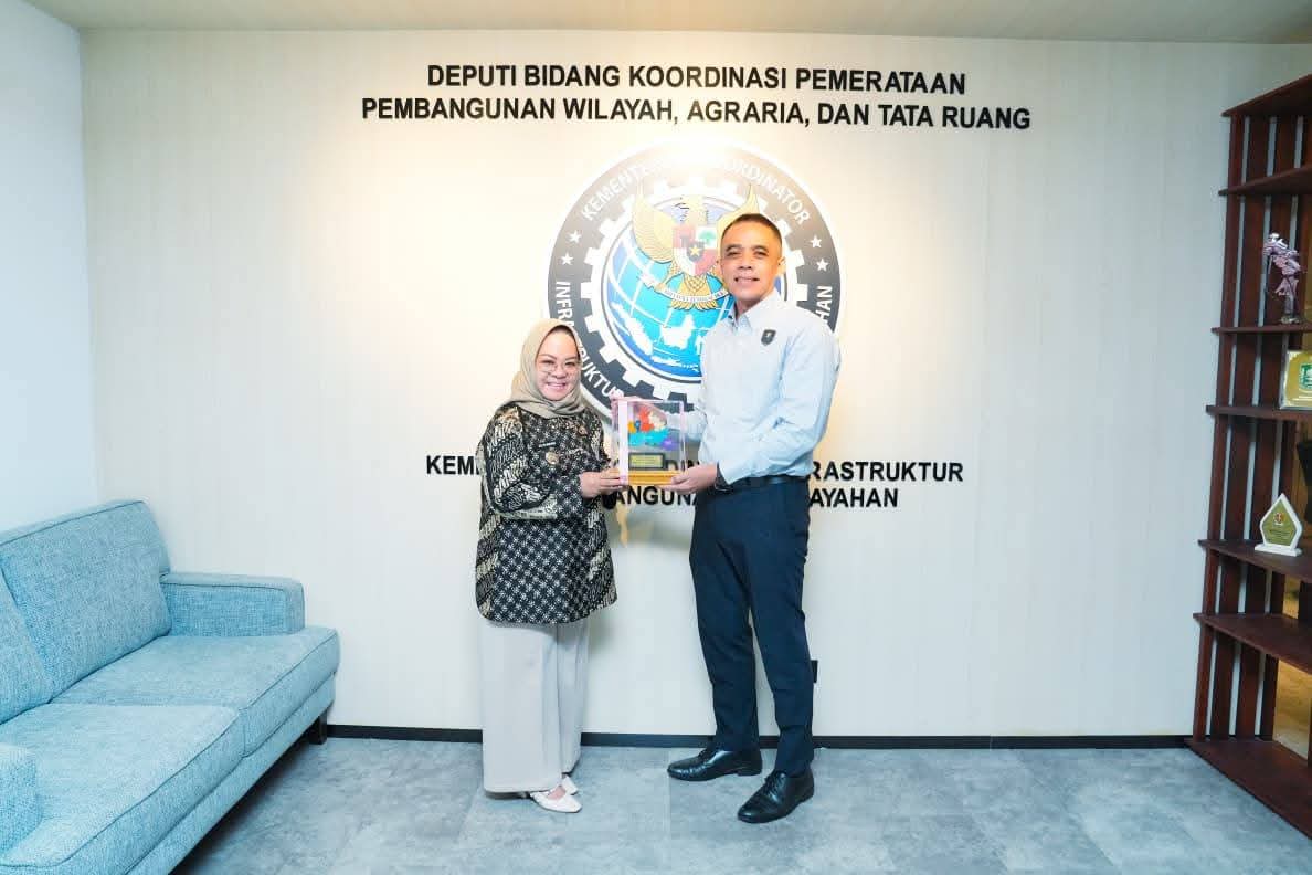 Rombongan Bupati Mesuji diterima langsung oleh Deputi Bidang Pemerataan Pembangunan Wilayah, Agraria, dan Tata Ruang, Bapak Nazib Faizal, ST., M.Sc. Pertemuan ini menjadi momentum krusial bagi Pemkab Mesuji dalam menyampaikan usulan prioritas terkait sinkronisasi pembangunan daerah dengan target nasional.