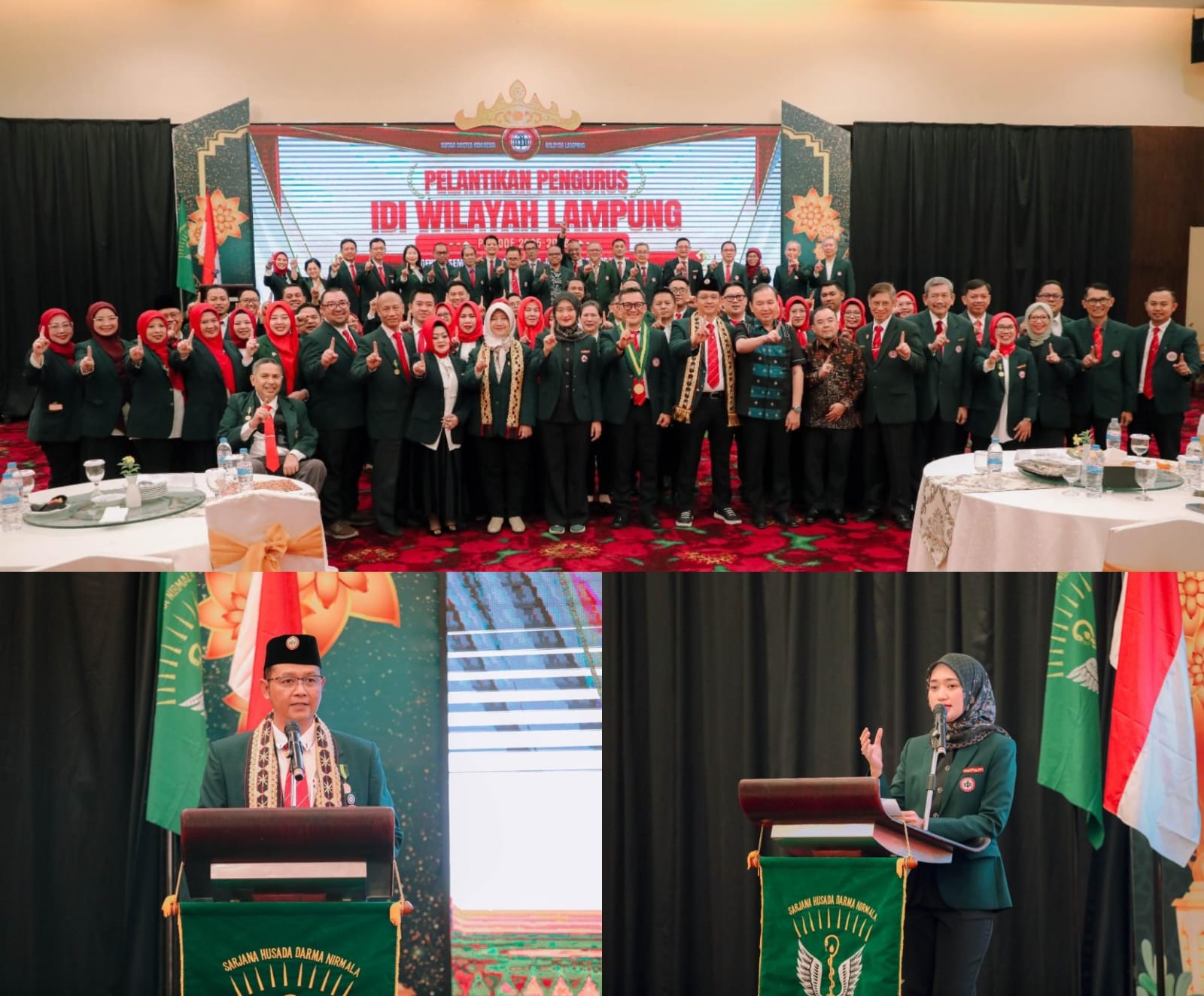 Pelantikan yang digelar di Hotel Emersia, Minggu (05/04/2026), dilakukan oleh Sekretaris Jenderal Pengurus Besar IDI, Telogo Wismo Agung Durmanto. Acara tersebut turut dihadiri Wakil Gubernur (Wagub) Lampung, Jihan Nurlela.