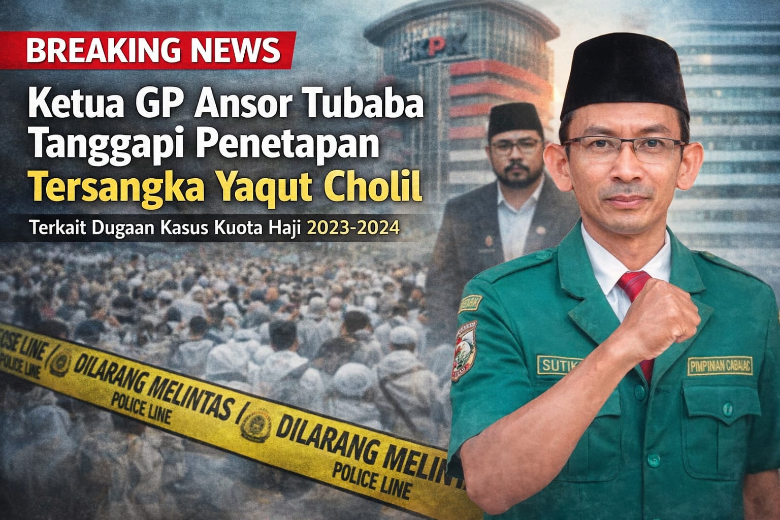 PIJAR MEDIA, TUBABA— Ketua Pimpinan Cabang Gerakan Pemuda (GP) Ansor Kabupaten Tulang Bawang Barat (Tubaba), Provinsi Lampung, Sutikno, angkat bicara terkait penetapan mantan Menteri Agama, Yaqut Cholil Qoumas, sebagai tersangka dalam dugaan kasus korupsi kuota haji tahun 2023–2024.