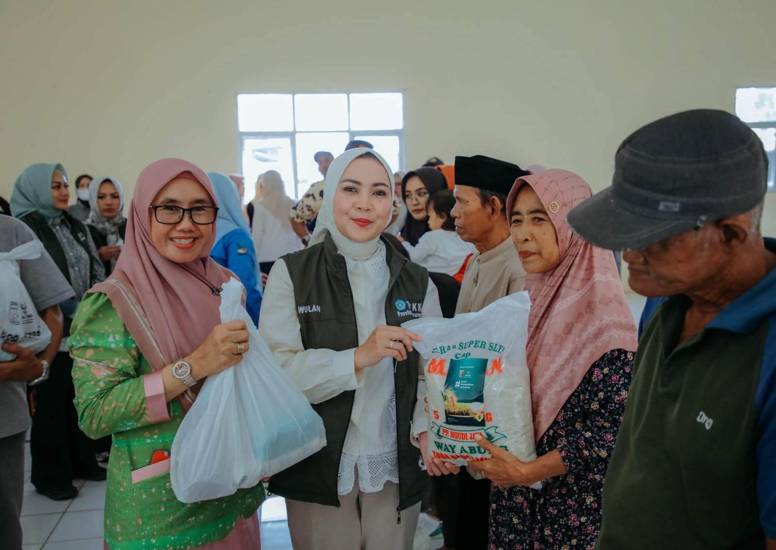 Di lokasi tersebut, sebanyak 40 warga menerima bantuan beras dan bahan kebutuhan pokok. Selain itu, TP PKK Provinsi Lampung juga menyalurkan susu dan telur untuk anak-anak dari keluarga berisiko stunting sebagai upaya membantu pemenuhan gizi. Batin Wulan turut meninjau kondisi lansia serta menyerahkan bantuan beras, sembako, dan tali asih.