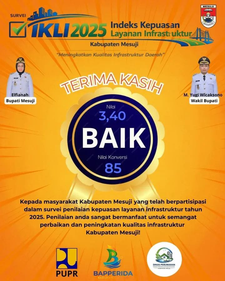 Untuk diketahui, capaian IKLI ini sejalan dengan visi Bupati Mesuji, Hj. Elfianah, yang menitikberatkan pada pembangunan infrastruktur sebagai urat nadi perekonomian masyarakat. Dengan infrastruktur yang mantap, diharapkan konektivitas antar wilayah di Mesuji semakin lancar, sehingga berdampak langsung pada kesejahteraan warga.