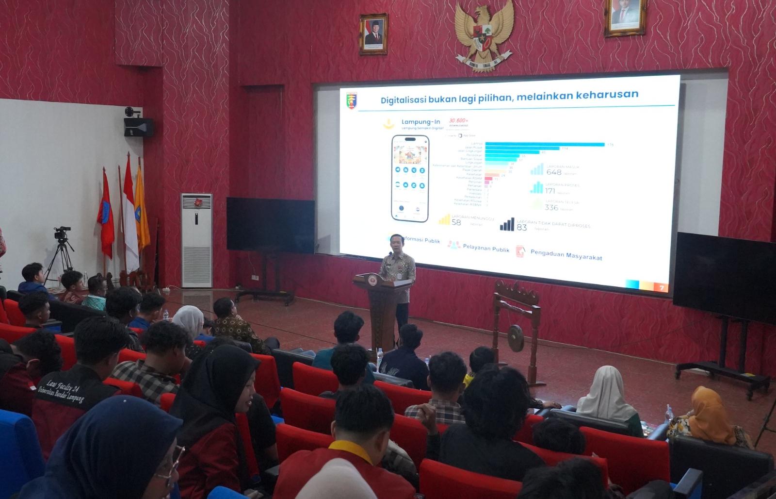 PIJAR MEDIA, BANDAR LAMPUNG — Pemerintah Provinsi (Pemprov) Lampung, mendorong mahasiswa untuk mengambil peran strategis dalam mempercepat transformasi digital sekaligus mencetak Sumber Daya Manusia (SDM) unggul di masa depan.