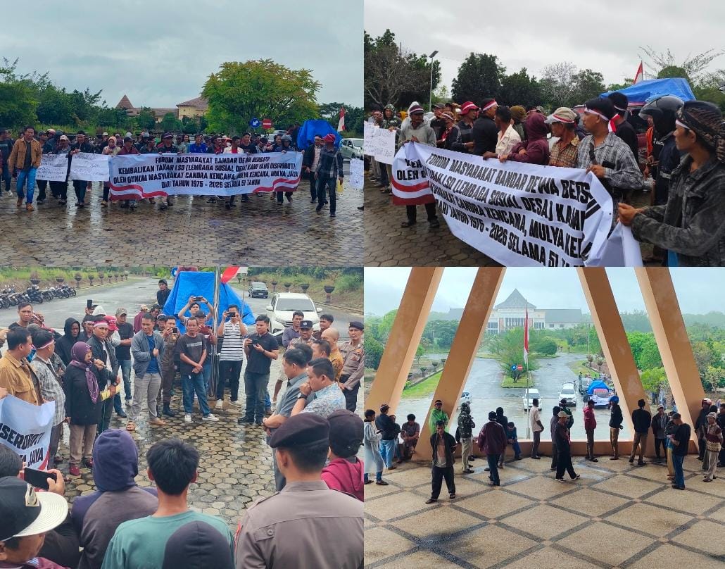 Aksi damai tersebut dilaksanakan pada Senin (02/02/2026) sekitar pukul 09.00 WIB. Aksi tersebut menuntut pengembalian tanah Lembaga Sosial Desa (LSD) seluas 50 hektare yang dinilai sebagai aset sah Tiyuh Bandar Dewa.