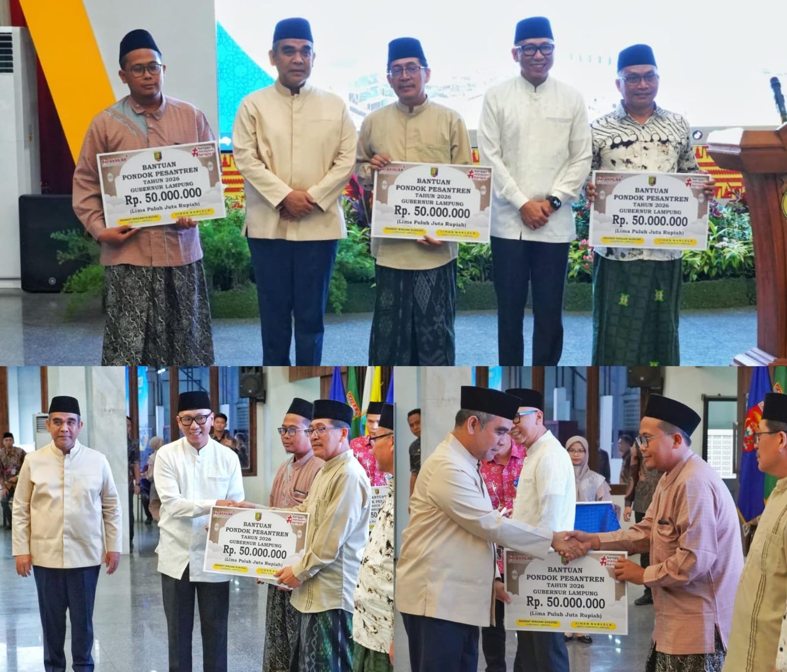 Sebagai bentuk dukungan konkret, Pemprov Lampung pada tahun anggaran 2026 mengalokasikan bantuan dana hibah kepada 20 pondok pesantren dan lembaga pendidikan keagamaan. Bantuan tersebut diserahkan langsung oleh Gubernur dalam kegiatan silaturahmi tersebut.