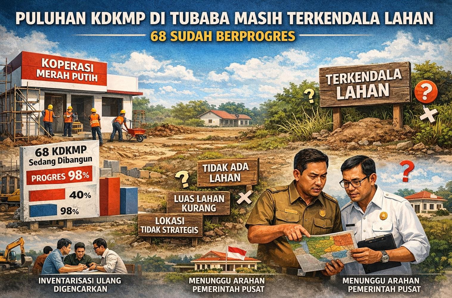Hingga awal Februari 2026, sebanyak 68 KDKMP tercatat telah masuk tahap pembangunan, sementara puluhan lainnya masih terkendala, terutama persoalan ketersediaan lahan.